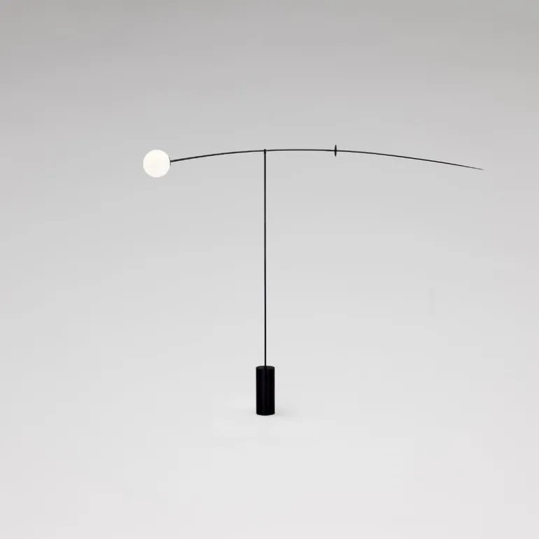 Golvlampan Mobile Chandelier 5 ingår i Michael Anastassiades kollektion Mobile Chandelier, som inspirerats av dekorativa mobiler. Lamporna i kollektionen kombinerar minimalistisk design med lyxiga material och blir som skulpturala konstverk som förhöjer rummet, oavsett om de är tända eller inte.