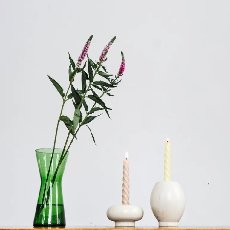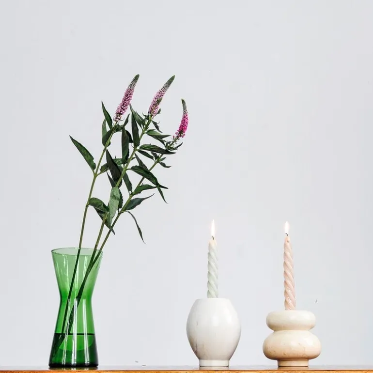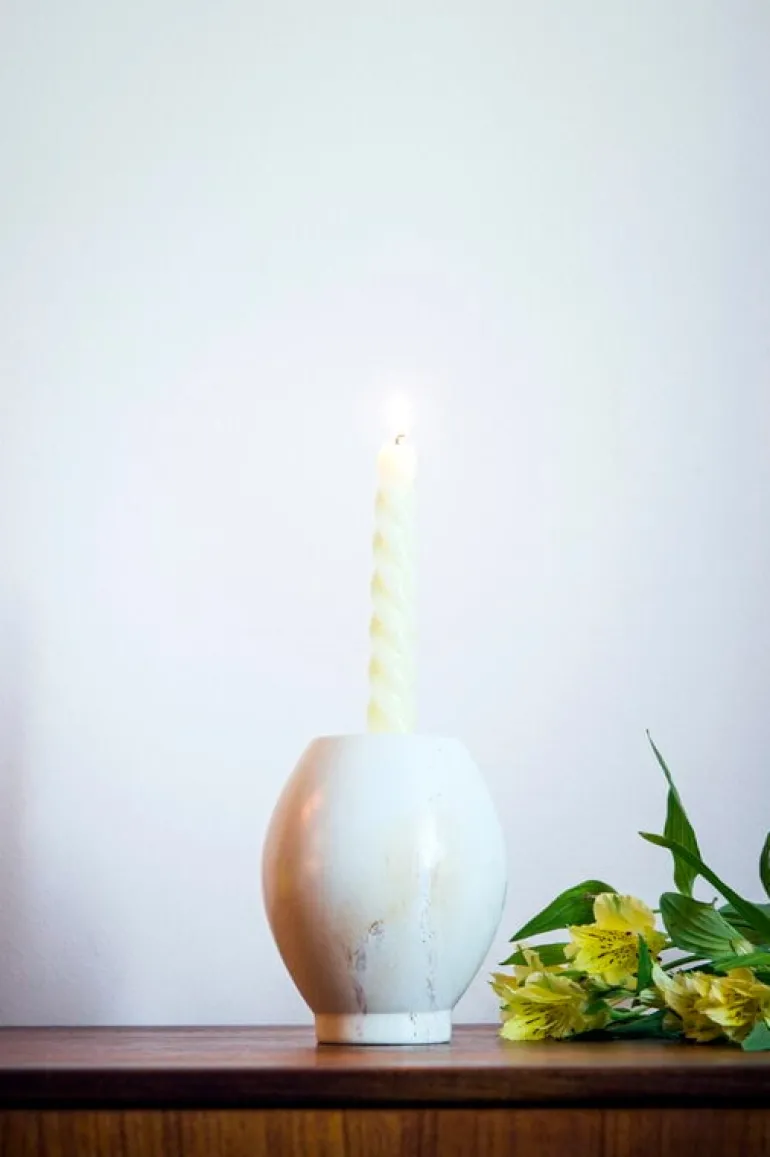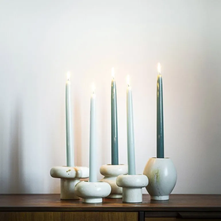 Mifukos Kandili ljusstake kombinerar en lekfull form och vackert naturligt material. Designad av finska Hanna Anonen, är ljusstakarna tillverkade av naturlig tvåsten som är älskad för sin släta, ofta nästan tvålliknande textur.