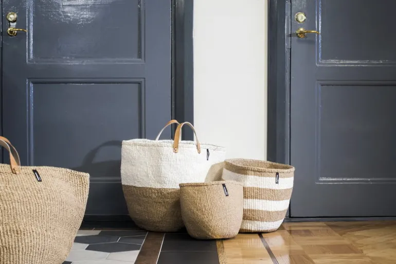 Mifukos korg Kiondo knyter samman traditioner från olika delar av världen: Skandinavisk design och kenyanskt hantverk. Den slitstarka korgen är gjord av sisal och papper och fungerar utmärkt som förvaring till leksaker och andra föremål, men passar även som shoppingbag eller dekorativ kruka. De korta läderhandtagen är dekorativa och gör korgen enkel att bära med sig. De vackra, unika korgarna är handgjorda i Kenya och varje exemplar är signerad av sin tillverkare.