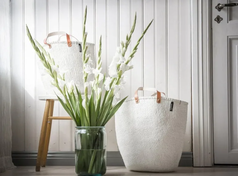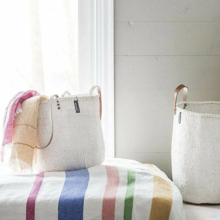 Mifukos Kiondo korg knyter samman traditioner från världens alla hörn: Skandinavisk design och kenyanskt hantverk. Den hållbara korgen är gjord av sisal och återvunnen plast och fungerar utmärkt som förvaring till leksaker och andra föremål, men passar även som shoppingbag eller dekorativ kruka. De korta läderhandtagen är dekorativa och gör korgen enkel att bära med sig. De vackra, unika korgarna är handgjorda i Kenya och varje exemplar är signerad av sin skapare.