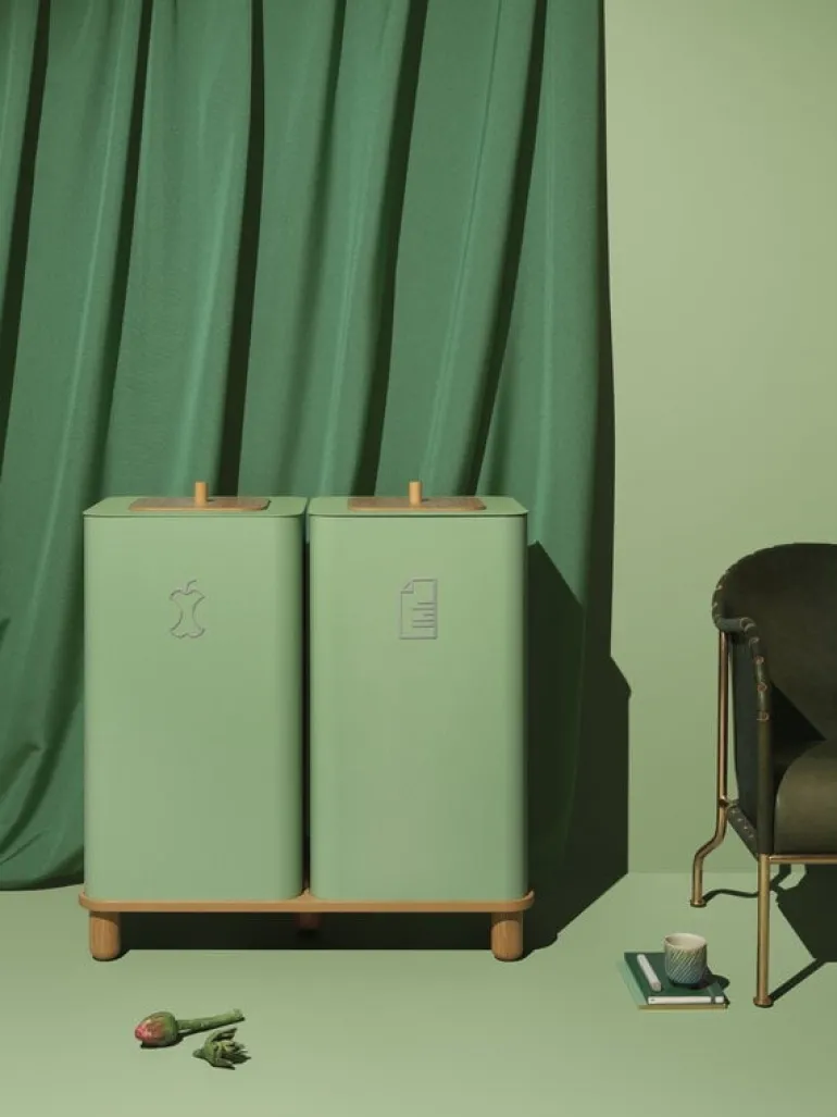 Mizettos återvinningskärl Arkad gör det enkelt att återvinna både hemma och på kontoret. Kärlet är tillverkat i pulverlackerad metall och har en generös kapacitet på upp till 100 liter. Den minimalistiska och eleganta designen gör att Arkad även kan användas som tvättkorg eller blomkruka.