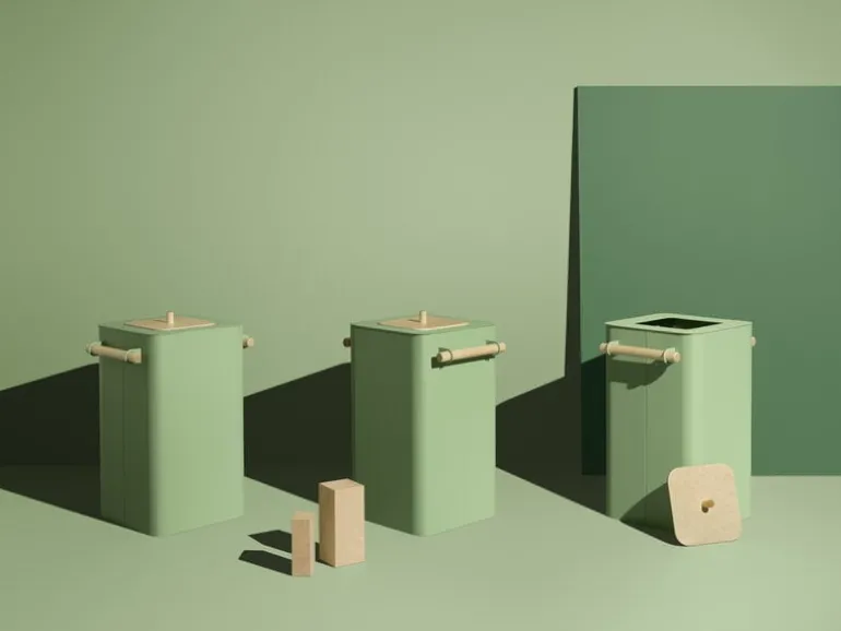 Återvinningskärlet Arkad finns i flera charmiga färger. Återvinningen blir enkel och bekväm när du väljer kärl i olika färger till olika typer av avfall! Fullända den snygga looken med trästativet Arkad Duo som söljs separat och som har plats för upp till två återvinningskärl.