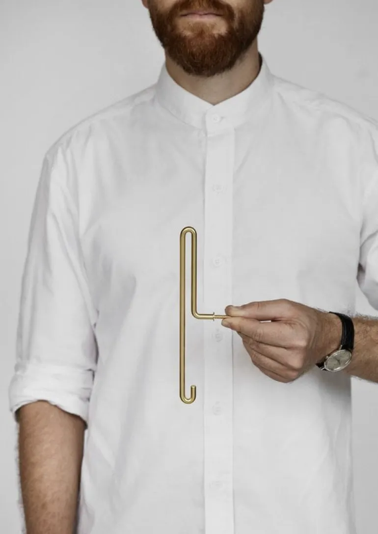 Moebes väggkrok adderar en funktionell touch av dansk design till hallen eller andra omklädningsutrymmen. Den enkla kroken har två upphängningar för kläder och accessoarer: en övre och en nedre. Moebes väggkrokar fungerar lika bra individuellt som flera i rad.