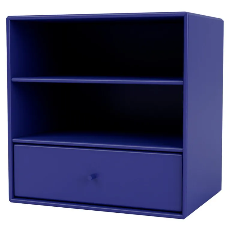 Montana Mini-modulen, bestående av en låda och två hyllfack, är en enkel men extremt multifunktionell förvaringsmodul som kan monteras på väggen eller placeras på golvet, antingen individuellt eller i grupper. Modulen monteras på väggen genom att hänga den på den medföljande upphängningsskenan med små distanser – på detta sätt kan du enkelt omorganisera modulerna utan några verktyg och justera dem genom att rotera distanserna. Alla hörn på modulen har förborrade hål, vilket gör att du kan montera den på det sätt du vill. Medföljer gör även halkskydd för att stapla modulerna ovanpå varandra.