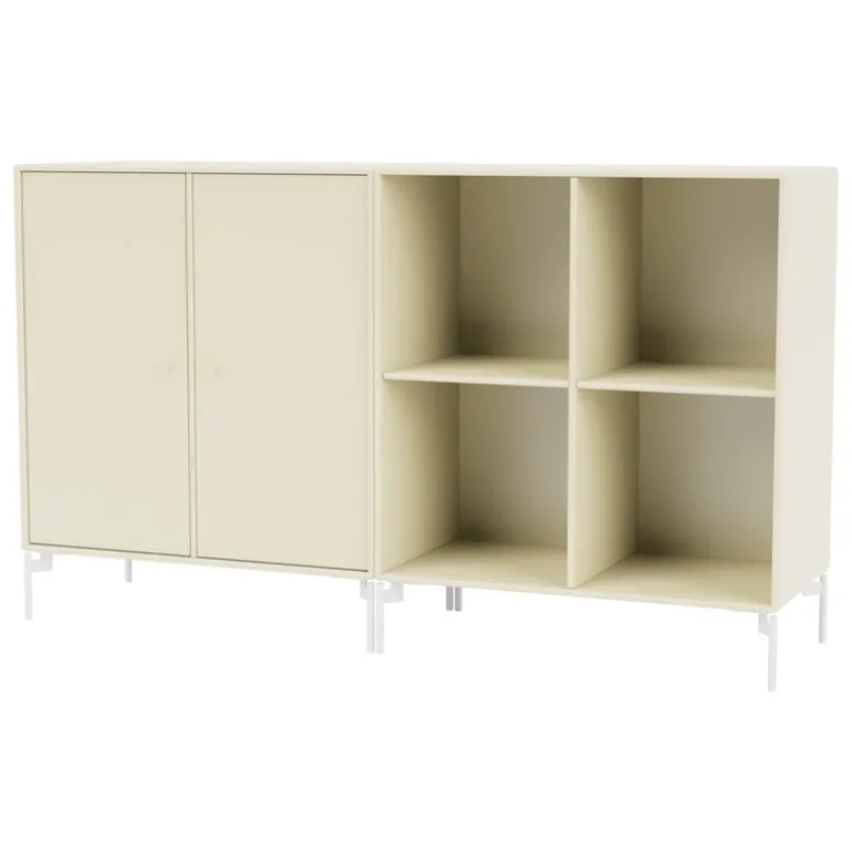 Montana Furnitures sideboard Pair är en mångsidig förvaringsenhet som fungerar lika bra som ett TV-bord, bokhylla eller kontorsmöbel. Sideboardet, som står på tunna metallben, består av ett skåp och en öppen hyllösning.