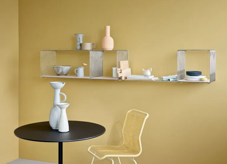 Panton Wire-systemet gör det möjligt för dig att skapa en anpassningsbar förvaringslösning till vilket rum som helst i huset. Du kan arrangera modulerna, hyllorna och panelerna till en fristående bokhylla, montera dem på väggen som ett nattduksbord eller kökshylla, eller sätta ihop dem till en rumsavdelare. Resultatet är – typiskt för Verner Pantons design – industriellt, elegant och luftigt på samma gång. Montanas produkter har tillverkats i Danmark på företagets egen fabrik.