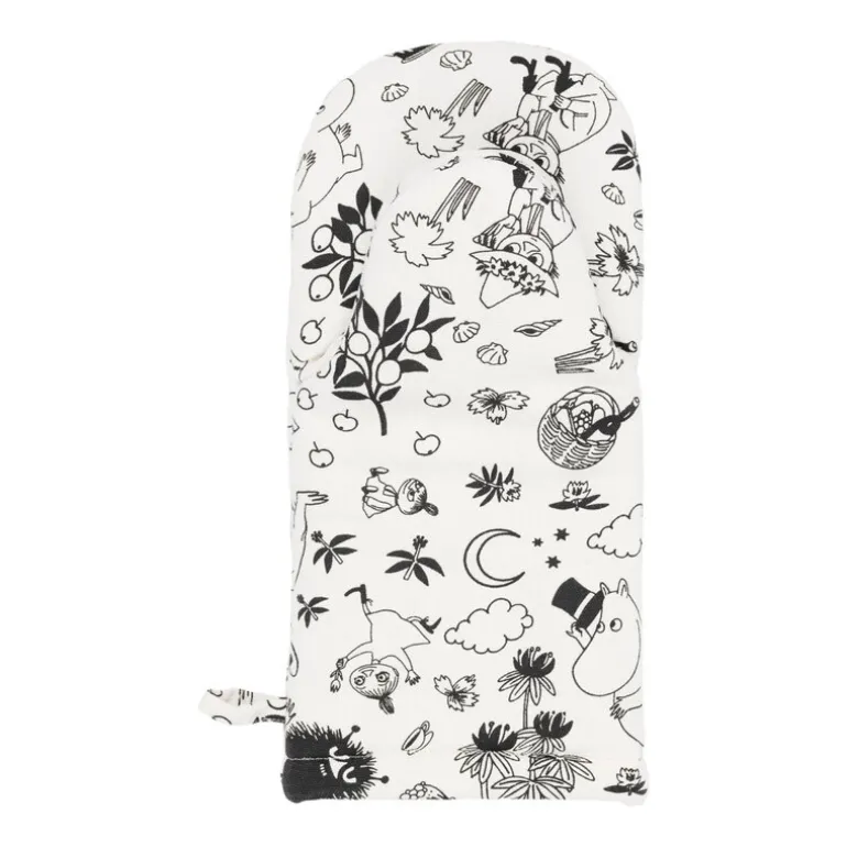 Mumin-grytlappen från Moomin Arabia för med sig den magiska stämningen från Mumindalen in i varje Muminälskares kök! Den här grytlappen i off-white och svart är dekorerad med Mumintrollen och deras många vänner som förbereder sig för en sommarfest. Grytlappen är gjord av 100 % bomull med polyesterfyllning och har en ögla för upphängning.