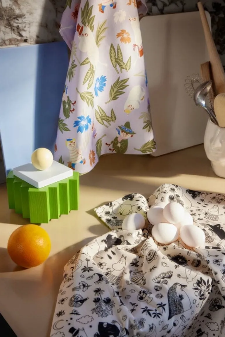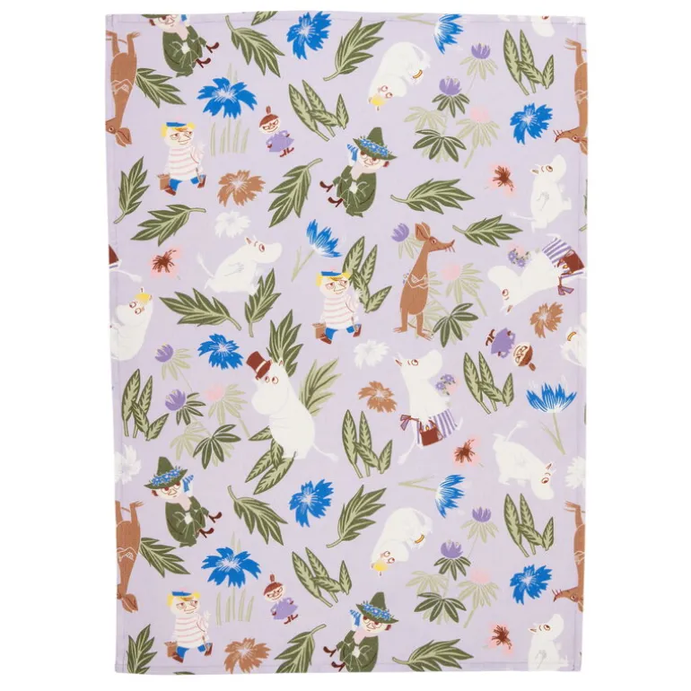 Kökshanddukarna Mumintrollen från Moomin Arabia för med sig den magiska stämningen från Mumindalen in i varje Muminälskares kök! Dessa lila och vita kökshanddukar pryds av bekanta Muminfigurer omgivna av härliga sommarblommor och frodig grönska. Muminkökshanddukarna är tillverkade i 100 % ekologisk bomull.