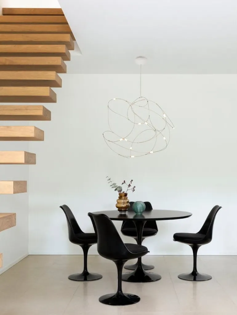 Tack vare sin delikata, lätta design kan Flock of Light användas som stämningsbelysning i en mängd olika utrymmen: du kan hänga den över ett matbord, soffgrupp eller säng, i en lobby eller korridor, eller till och med i ett barnrum. Flock of Light designades av det holländska kollektivet Studio Toer, känt för sina interaktiva ljusinstallationer.