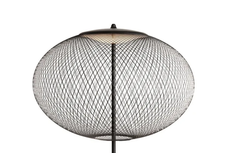 Mooois golvlampa NR2, som är designad av Bertjan Pot, smälter samman en elegant bubbelliknande struktur av glasfibertrådar med en elegant stålram. Den iögonfallande lampan har sitt ursprung i den holländska formgivarens lekfulla syn på former och material, och dess integrerade LED-ljus sprider ett mjukt sken genom ett strukturerat, vävt mönster. Den lekfulla golvlampan NR2 charmerar med sina rundade former och sitt förtrollande ljus.