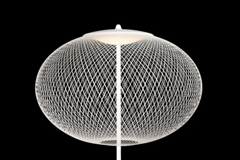 Mooois golvlampa NR2, som är designad av Bertjan Pot, smälter samman en elegant bubbelliknande struktur av glasfibertrådar med en elegant stålram. Den iögonfallande lampan har sitt ursprung i den holländska formgivarens lekfulla syn på former och material, och dess integrerade LED-ljus sprider ett mjukt sken genom ett strukturerat, vävt mönster. Den lekfulla golvlampan NR2 charmerar med sina rundade former och sitt förtrollande ljus.