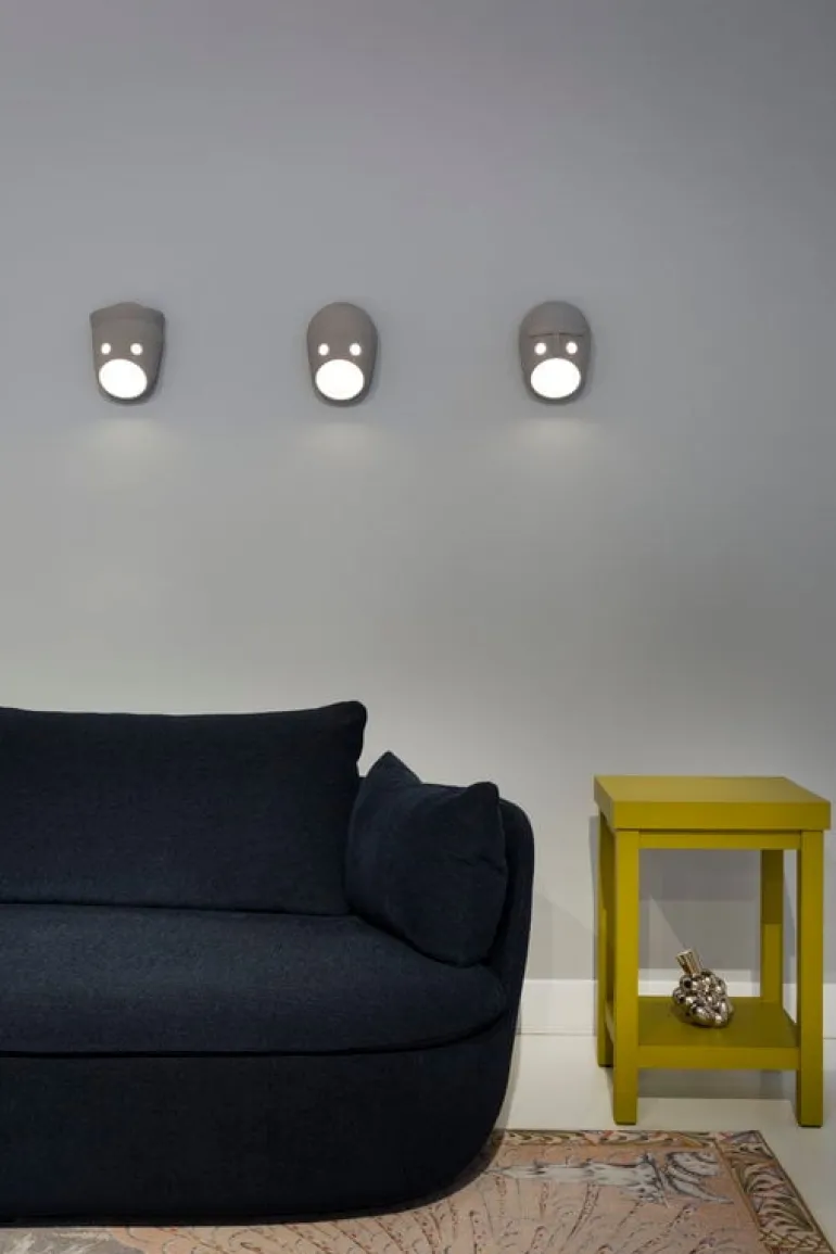 Mooois vägglampa The Mayor är en av lamporna i kollektionen från Kranen/Gille som inspirerades av en klan med unika karaktärer. Uppsättningen lampor som kallas för The Party kommer alla med egna personligheter, berättelser och hemligheter vilka delvis avslöjas från uttrycken på deras ansikten i keramik. Den inbjudande kollektionen lämnar rum för fantasin: du får själv försöka ta reda på dynamiken och hemligheterna som vägglamporna bär på.