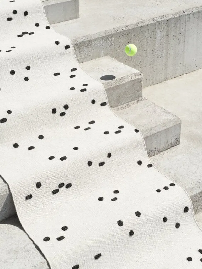 Mattan Seurapiiri I, designad av Tomi Leppänen för MUM’s, pryds av ett abstrakt mönster baserat på typografiska element. Mattan är en del av Leppänens Typewriter-kollektion och är inspirerad av Bauhaus och specifikt textildesignern Anni Albers arbete, som på 1930-talet experimenterade med att använda sin skrivmaskin som ett verktyg för att skapa mönster. Det svartvita mönstret på Seurapiiri (finska för “sällskap” eller “cirkel”) är också skapat med hjälp av punkter och streck från en skrivmaskin.
