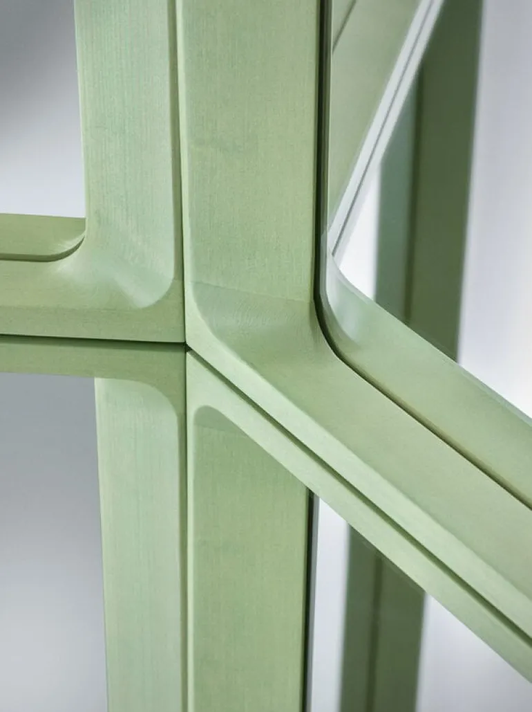 Muutos spegel Arced liknar ett fönster tack vare fördjupningarna i spegelramen. Istället för vyn ut genom fönstret är det som väntar inom just denna träram en ännu större fröjd för ögat – hej på dig du! Spegelramen är gjord av gran med ett naturligt ådringsmönster som ger en härlig livfullhet åt Arceds utförande. Den rektangulära spegeln har formgivits av Rhys Cooper.