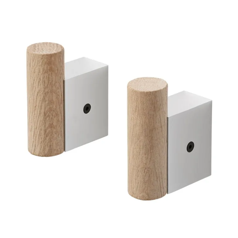 Muutos Attach klädkrok, designad av Dimitri Bähler, baseras på kontraster: i designen möter skarpa kanter och belagt aluminium runda former och ekträets naturliga utseende. Placera Attach-klädkrokarna i en fin rad för ett raffinerat utseende, eller lek med färger och upplägg för ett mer unikt uttryck. Setet innehåller två klädkrokar.