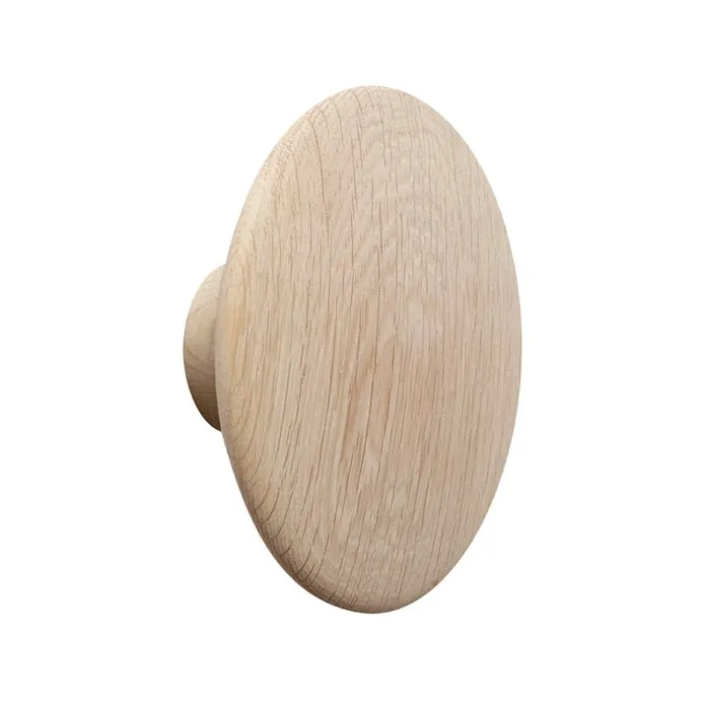 Muutos Dots Wood-krokar, som designats av Lars Tornøe, är ett utmärkt sätt att hänga dina kläder, väskor, handdukar och accessoarer – du behöver bara bestämma vad och var! Dots Wood-krokarna är tillverkade i lent polerat trä format som en cirkel, och skapar en livfull och lekfull atmosfär i hallen, köket eller sovrummet. Den populära Dots-familjen kännetecknas av personliga krokar i olika storlekar, färger och material – du kan arrangera ett unikt grafiskt mönster på väggen, eller förnya en förvaringsmöbel genom att använda krokarna som handtag på skåp eller lådor. Var inte rädd att använda fantasin!