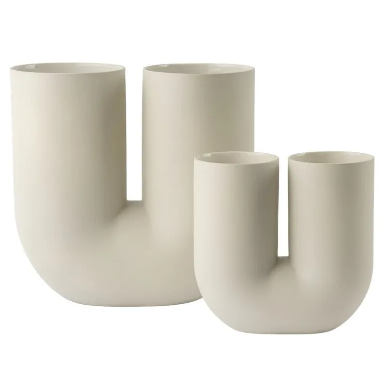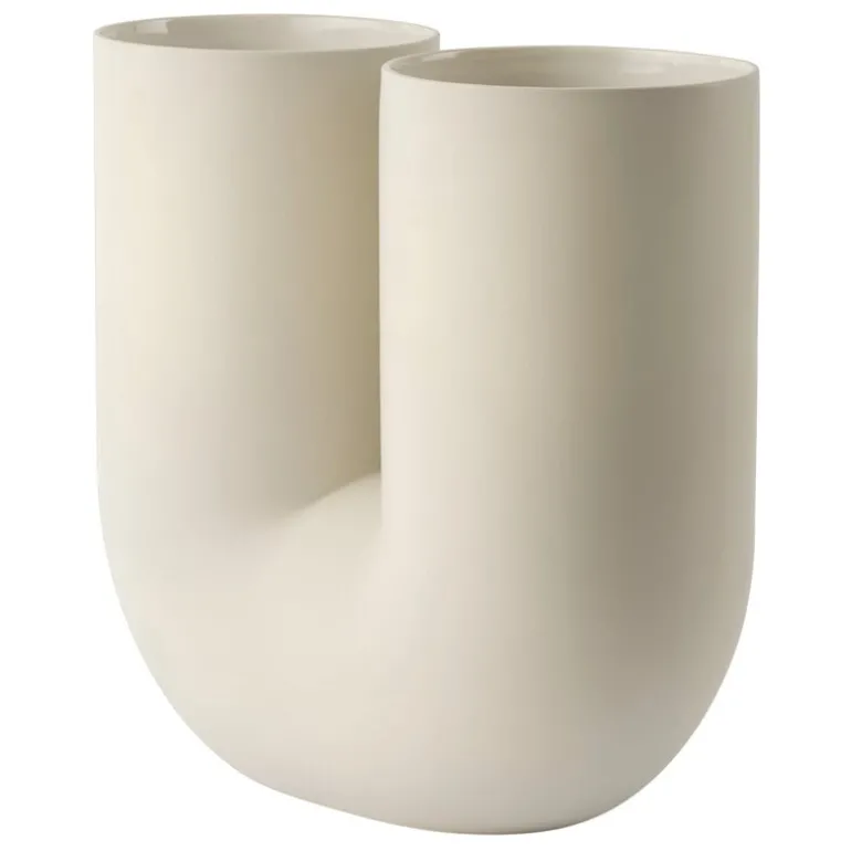 Muutos Kink-vas är en kombination av traditionellt hantverk, modern teknik och insiktsfull design. När de designade vasen ville Earnest Studio utforska potentialen i digital manipulation av enkla former. Resultatet är den lekfulla, rörformade Kink-vasen med en skulptural look som kommer att liva upp alla moderna interiörer, både som ett fristående konstverk och som en mångsidig vas. Kink-vasen är gjord av porslin med utsidan kvar oglaserad och naturlig; insidan är täckt med en stilfull glansig glasyr.