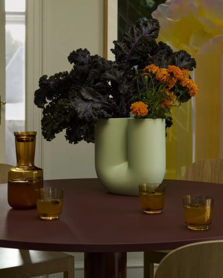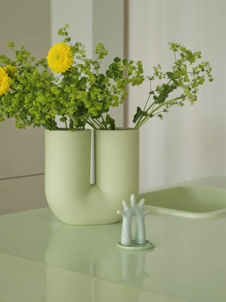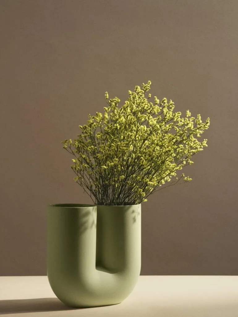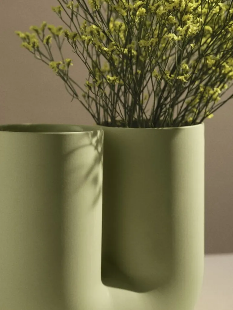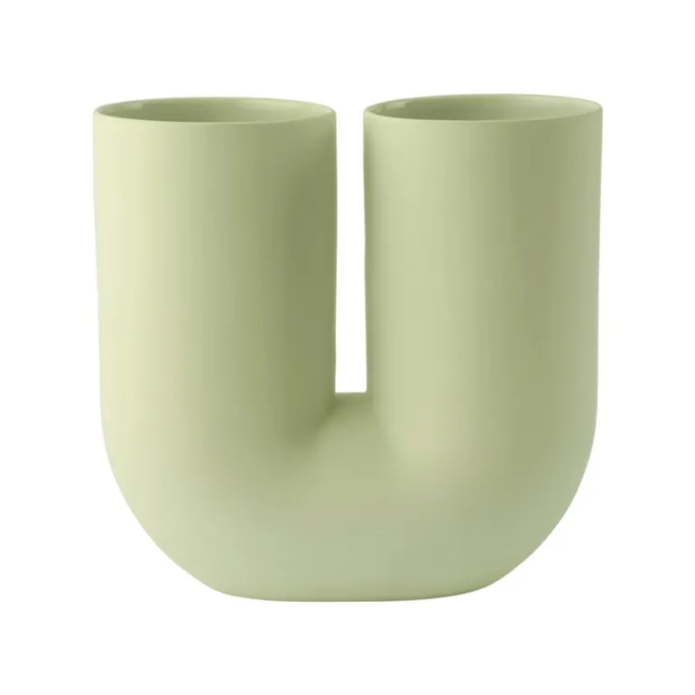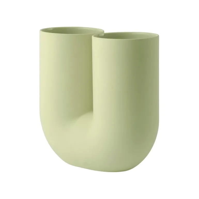 Muutos Kink-vas är en kombination av traditionellt hantverk, modern teknik och insiktsfull design. När de designade vasen ville Earnest Studio utforska potentialen i digital manipulation av enkla former. Resultatet är den lekfulla, rörformade Kink-vasen med en skulptural look som kommer att liva upp alla moderna interiörer, både som ett fristående konstverk och som en mångsidig vas. Kink-vasen är gjord av porslin med utsidan kvar oglaserad och naturlig; insidan är täckt med en stilfull glansig glasyr.