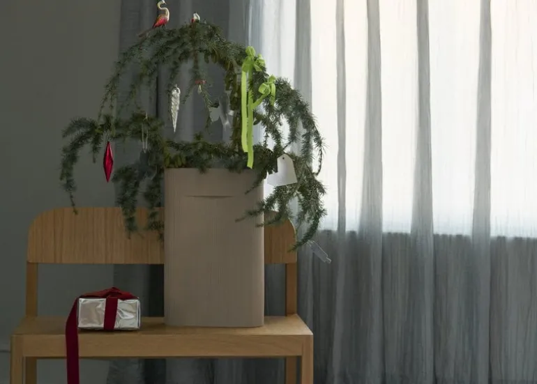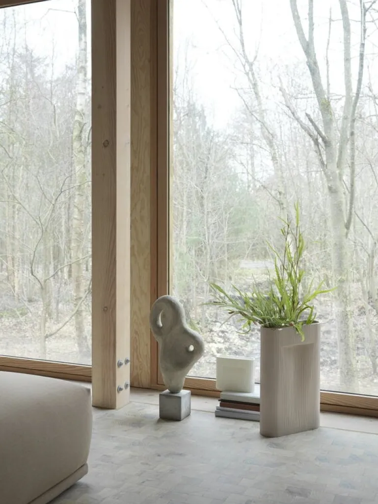 Ridgevasen från Muuto karaktäriseras av en distinkt form och vertikala linjer som drar sig längs med vasens oglaserade yttre. Vasen designades av Helsingfors-baserade Studio Kaksikkos Wesley Walters och Salla Luhtasela. Inspirationen fanns i Paris, nämligen en fasad de stötte på. Vasens skulpturala form är designad att lämna ett avtryck oavsett om det är blommor i eller ej. Utöver det är vasen tillräckligt stor för att placeras för sig själv på golvet.