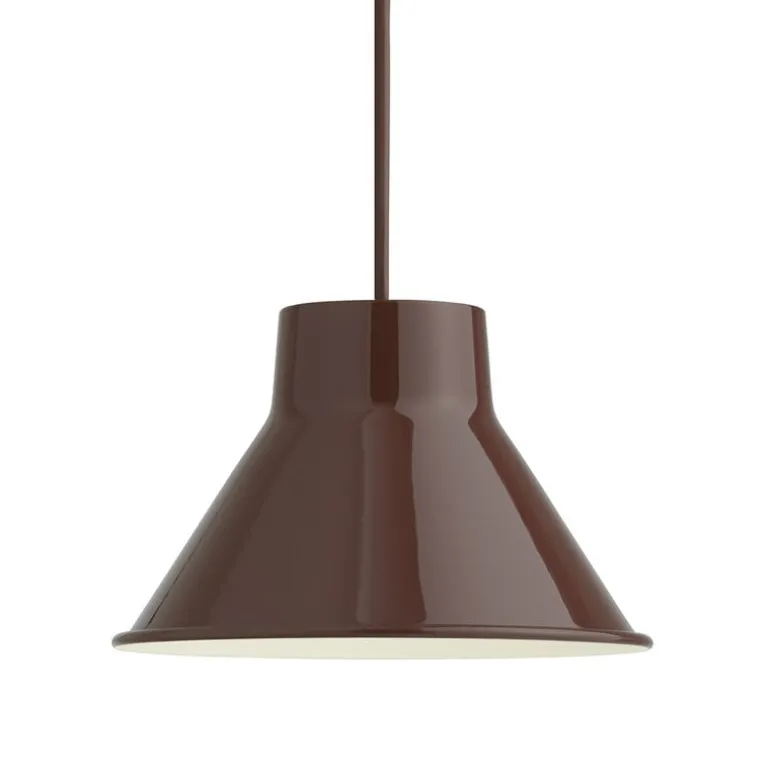 Muutos pendellampa Top är en modern tolkning av den traditionellt konformade taklampan som designats av BIG-GAME. Den vackert simpla och tidlösa armaturen är gjord av tåligt stål med en högglansig finish som ger ljus till den grafiska formen av skärmen. En lätt rullad kant mjukar upp Top-pendelns charmiga, industriella utseende.