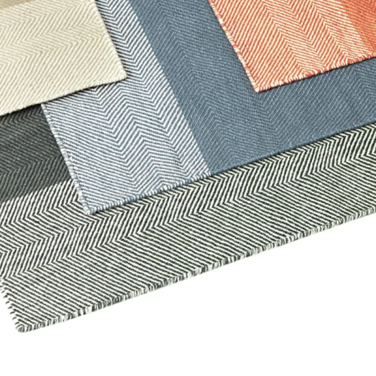 Formgivaren Tina Ratzer berättar om Varjo-kollektionen: ”Tanken var att skapa en geometrisk matta med flera lager och dimensioner. Jag ville ge det första lagret ett lättförståeligt stilspråk och en balanserad färgsättning. När du går ett lager djupare framträder ett dynamiskt fiskbensmönster som ger mattan en ny dimension och en överraskande twist. Varjo är finska för skugga, vilket är en referens till de skuggeffekter som skapas mellan lagren, eftersom det mörkaste färgblocket nästan reser sig över de andra och ger ett tredimensionellt intryck.”