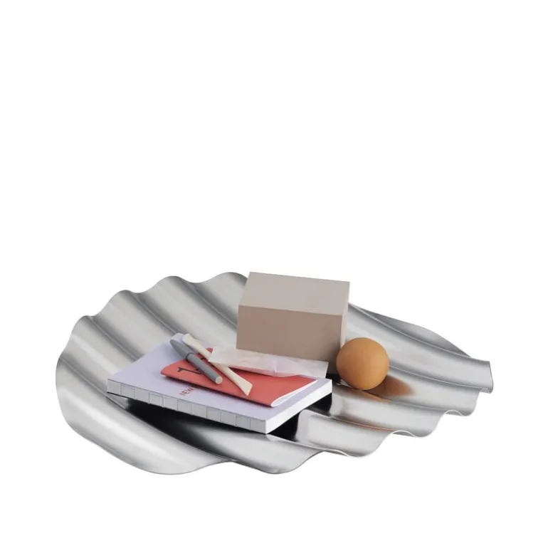 Muutos Wave-bricka har fått sitt namn från dess uttrycksfulla vågformade rörelser. Tillverkad av rostfritt stål, erbjuder den generöst stora Wave-brickan en distinkt, skulptural plats för små föremål och dekorationer, och den fungerar också som en modern fruktskål. Den grafiska elegansen hos Wave-brickan skapades av det Milano-baserade kontoret CARA DAVIDE.