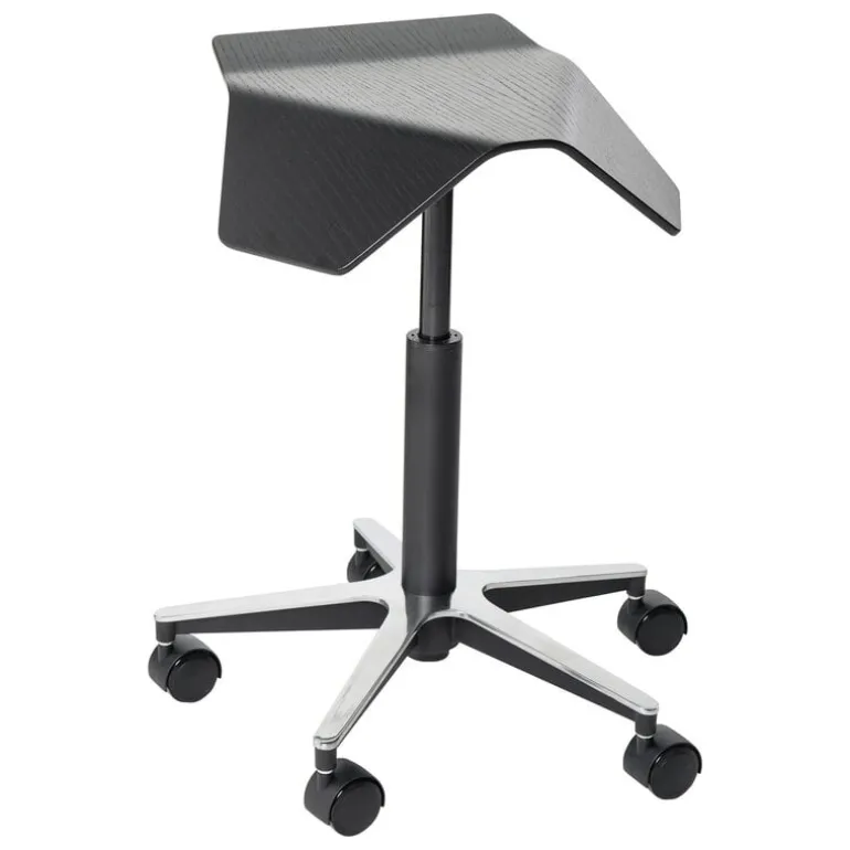 ILOA sadelstol från finska varumärket myKolme är en ljuvlig kombination av ergonomi och estetik. ILOA kontorsstolen har en metallbas med hjul och ett säte som går att justera på höjden vilket uppmuntrar till en naturligt rak hållning medan den även ger stöd till låren. Sätet är gjort av böjd björkplywood och askfaner i elegant svart färg. Den moderna och kompakta ILOA-sadelstolen är ett platssparande alternativ för alla utrymmen.