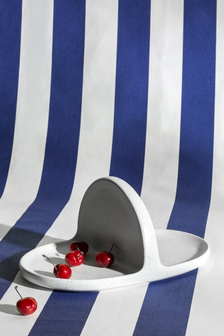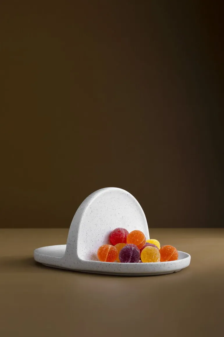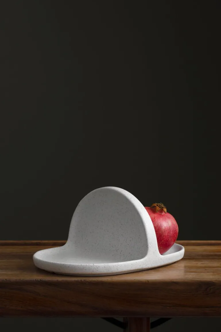 Korg-brickan från Nedre Foss, skapad av de italienska formgivarna Paolo Lucidi och Luca Pevere, är en liten keramisk bricka som är lika lämplig för att servera mat som för att förvara små föremål. Väggen i mitten av brickan fungerar som ett handtag och delar upp brickan i två fack.