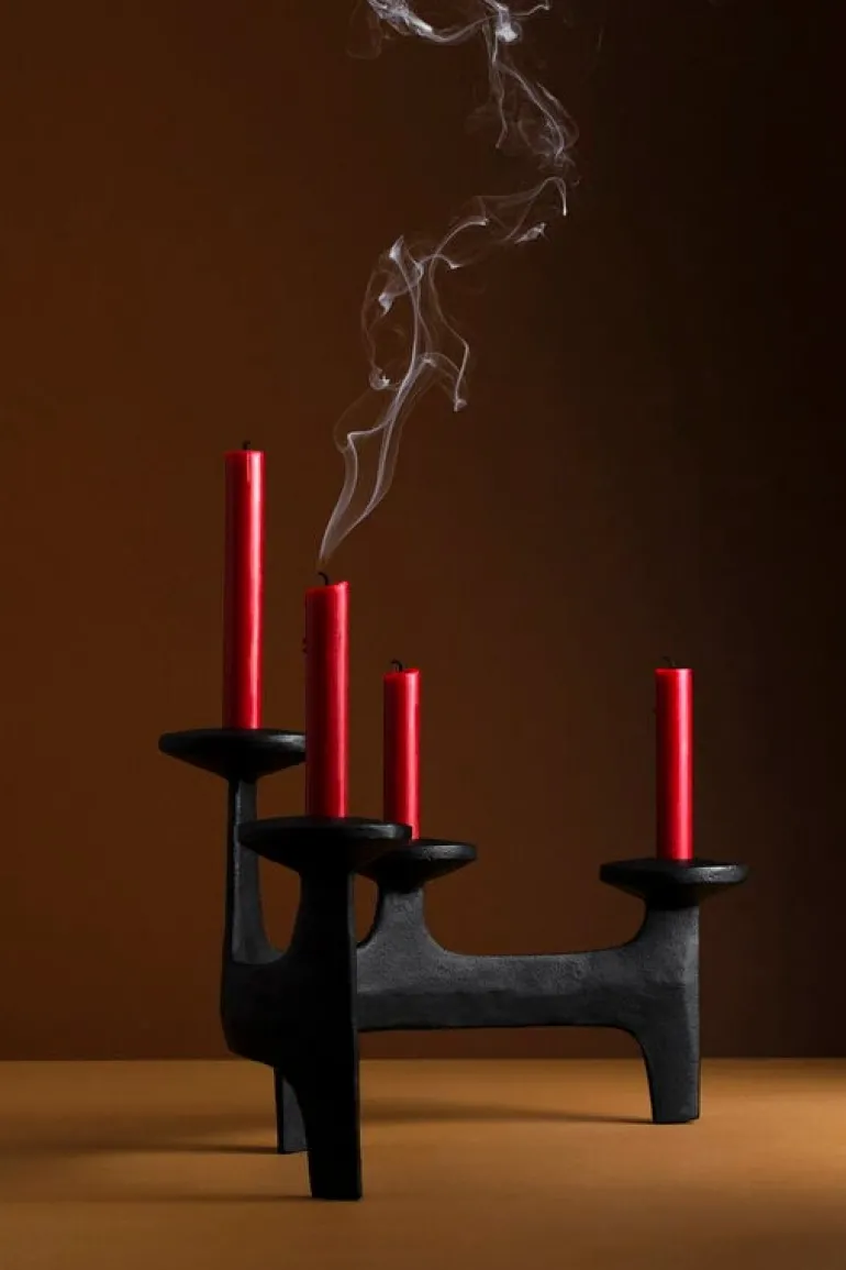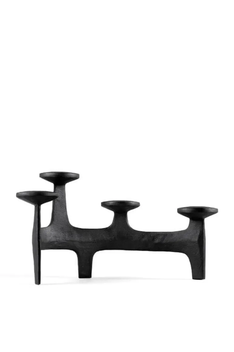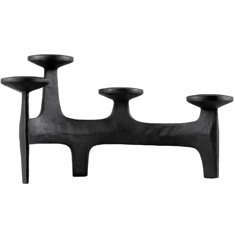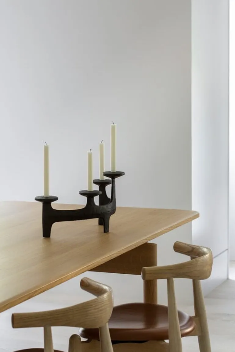 Kandelabern Nunatak, från Nedre Foss, kommer garanterat att skapa en festlig stämning vid olika tillfällen. Den fyrarmade kandelabern är tillverkad av stabilt gjutjärn och är designad av det norska designbolaget Anderssen & Voll. Den arkitektoniska, men ändå organiska formen kan uppfattas som en grupp med torn eller som de unika formerna av hjorthorn, beroende på betraktarens öga. Namnet på kandelabern kommer från Nordens naturlandskap – Nunatak syftar till en kulle eller ett berg omringat av glaciäris. Välj dina favoritljus av avsmalnande modell och låt det milda skenet förgylla ditt middagsbord eller vardagsrumsbord.
