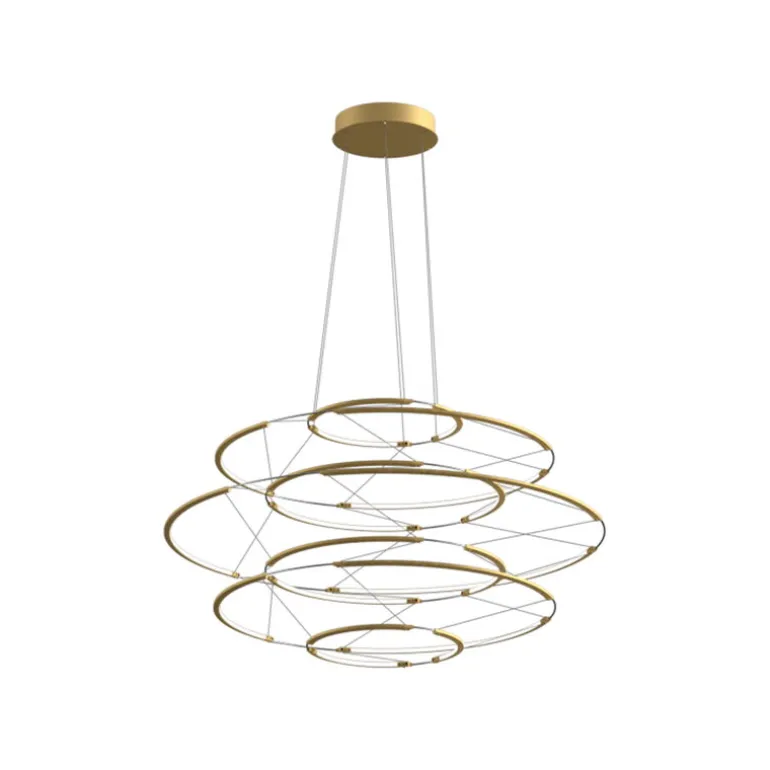 Ljuskällan kommer från de integrerade linjära LED-lamporna som sitter inuti ringarna och ger både effektiv och vackert diffust ljus. Dessa dimbara LED-lampor gör att den minimalistiska ljuskronan sprider ett mjukt och inbjudande sken, samtidigt som den behåller sin starka, skulpterade närvaro. Drop är perfekt som blickfång i matsalar och vardagsrum, men även i större utrymmen som hotellfoajéer, restauranger och allmänna utrymmen.