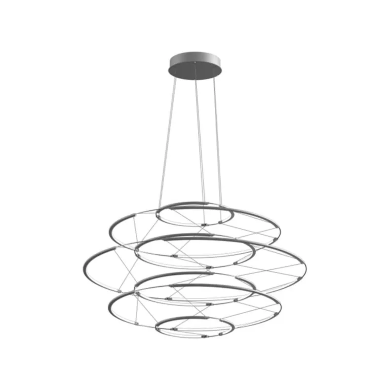 Ljuskällan kommer från de integrerade linjära LED-lamporna som sitter inuti ringarna, vilka ger både effektiv och vackert diffust ljus. Dessa dimbara LED-lampor gör att den minimalistiska ljuskronan sprider ett mjukt och inbjudande sken, samtidigt som den behåller sin starka, skulpterade närvaro. Drop är perfekt som blickfång i matsalar och vardagsrum, men även i större utrymmen som hotellfoajéer, restauranger och allmänna utrymmen.