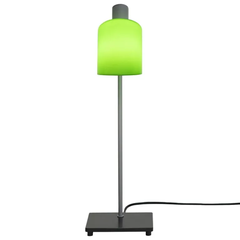 Nemo Lightings bordslampa Lampe de Bureau ger ett charmigt intryck med sin underbart enkla silhuett, som fått precis lagom mycket karaktär tack vare den charmigt färgade skärmen. På insidan är skärmen fortfarande vit för att bevara ljusets naturliga färg, men på utsidan sprider sig ett vackert sken från den lätt genomskinliga gröna glasytan när lampan är tänd.