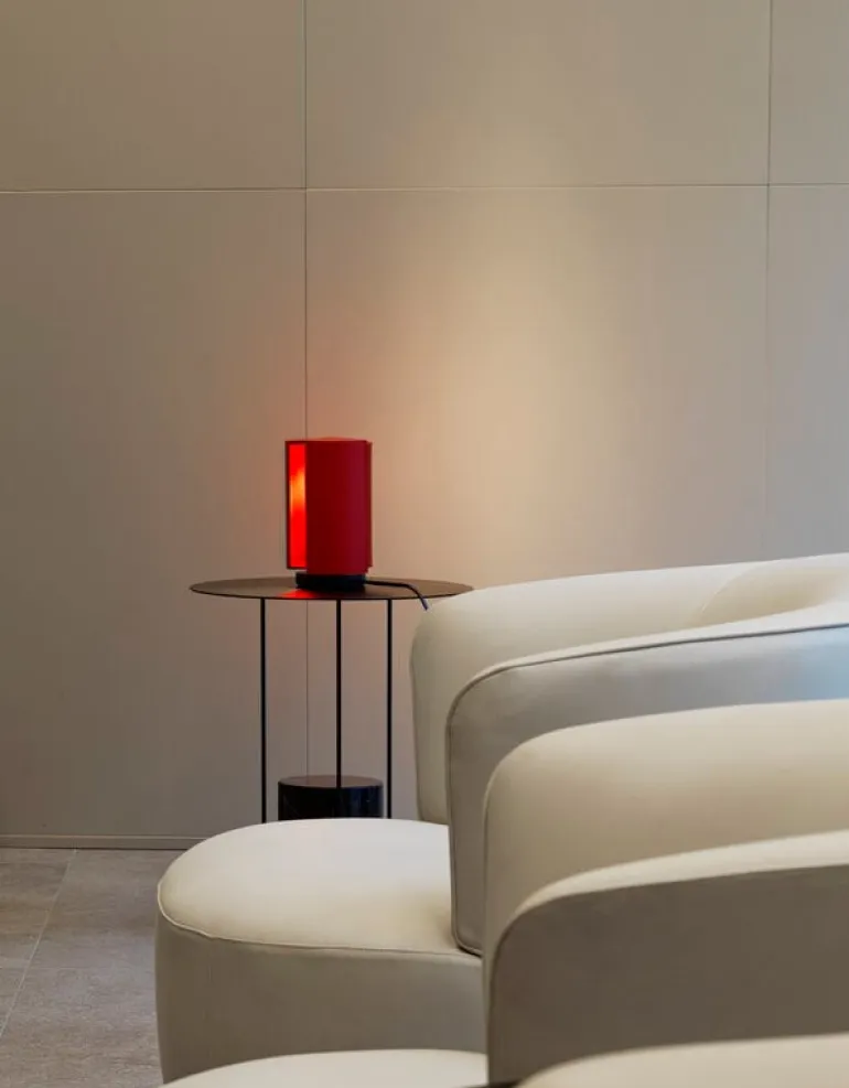 Nemos Pivotante à Poser, formgiven av Charlotte Perriand på 1950-talet, är en bordslampa med en lekfullt utformad, geometrisk design. Lampan har en cylindrisk stomme med två vridbara diffusers. Deras position avgör mängden ljus och om det är direkt eller indirekt. Pivotante á Poser är ett tidlöst föremål som charmar med sin smarta och färgglada form.