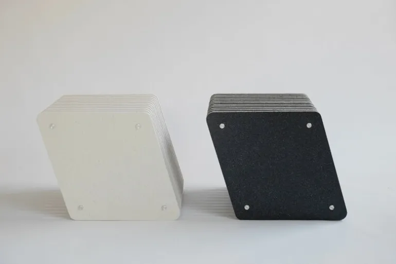Jää-kuben är designad av Jo Wilton och Mirka Gröhn, som ville visa att möbler tillverkade av återvunnet material kan vara funktionella, estetiska, vackra och hållbara samtidigt. Bordet är tillverkat av 100% återvunnen plast insamlad från konsumenter. Jää-kuben – precis som alla &New-produkter – är handgjord i Storbritannien.