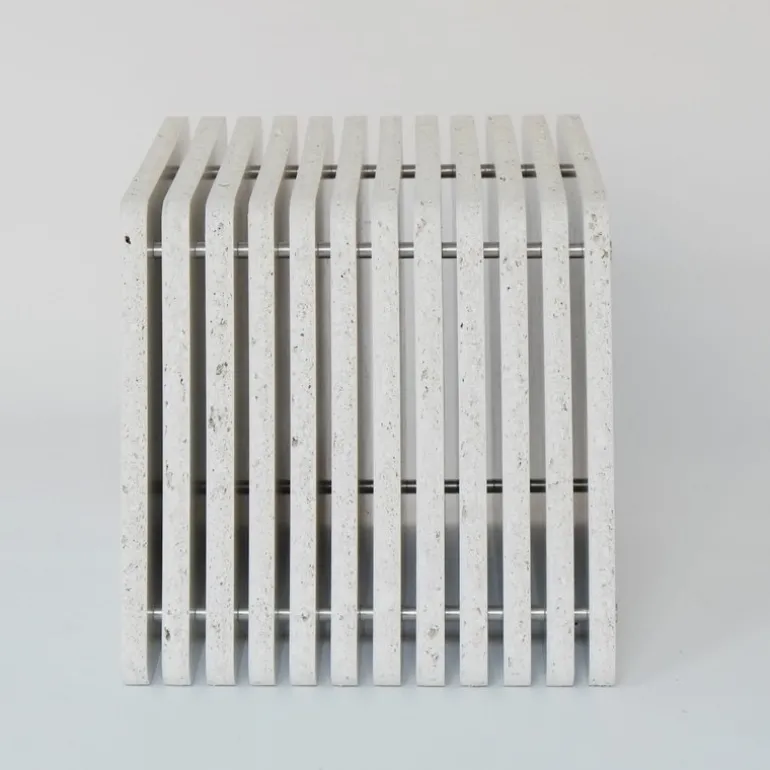 En överraskande sittplats, ett praktiskt sidobord, ett iögonfallande soffbord, ett nattduksbord som fulländar ett sovrum, ett elegant dekorativt element eller något helt annat – möjligheterna är oändliga med detta Jää-sidobord från &New. Den skulpturala Jää-kuben passar både för inomhus- och utomhusbruk, i hem och offentliga utrymmen.