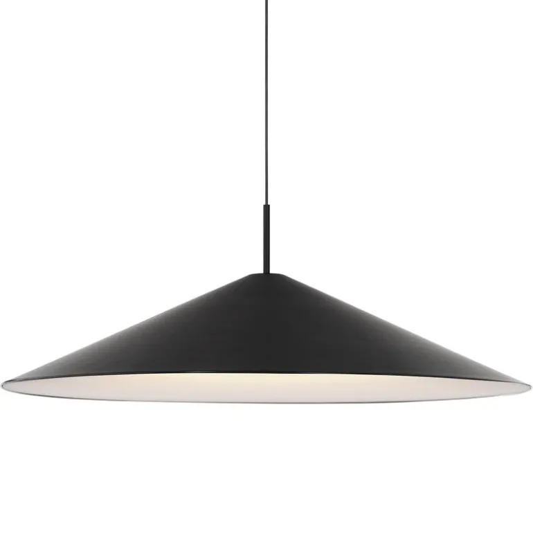 Pendellampan Brolly, från New Works och med design av Knut Bendik Humlevik, kombinerar en härligt klassisk estetik med modern teknik. Brolly har en bred, konformad skärm som hänger från en elegant, svart sladd, medan den integrerade, dimbara LED-enheten med en bländfri diffusor badar utrymmet nedanför i ett mjukt och behagligt ljus. Med sin imponerande storlek gör Brolly ett starkt intryck ovanför matbordet, i vardagsrummet eller i lobbyn, och passar lika bra i hemmet som på kontoret eller i offentliga miljöer.