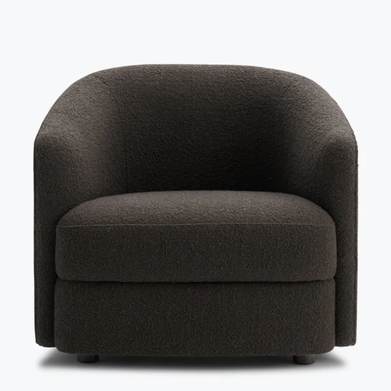 Covent, designad av Arde Design Studio för New Works, är en modern, stoppad loungefåtölj som fungerar lika bra i en läshörna som i par med en soffa. Den mjuka toppen på fåtöljen sträcker sig hela vägen ner till golvet och den kurviga formen utstrålar inbjudande värme. Covent-fåtöljen finns tillgänglig i flera olika högkvalitativa klädseltyger och visar upp expertkunskap och genomtänkta detaljer.