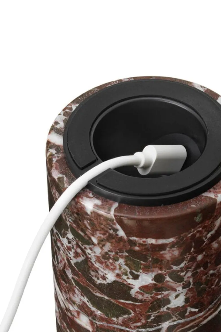 I den bärbara Kizu-lampan finns ett batteri som kan laddas upp via USB, och lampan lyser i upp till 10 timmar när den är inställd på högsta ljusstyrkan. Den sladdlösa bordslampan är dimbar i tre lägen, som ställs in genom att man trycker på den lilla, runda metallskivan på skärmens ovansida.