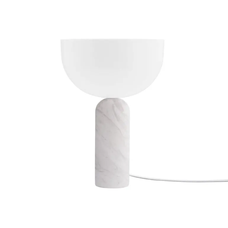 New Works bordslampa Kizu, formgiven av Lars Tornøe, trotsar tyngdlagen med sin djärva kombination av geometriska former. Kizu-lampans charm kommer från den halvklotformade diffusern, som tycks balansera uppochner på en rundad fot av marmor. Den vita akrylskärmen släpper från sig ett milt, behagligt sken som inte bländar, så att lampan ger ett imponerande och på samma gång lugnande intryck. Kizu är ett tjusigt blickfång i sovrummet, vardagsrummet eller någon annanstans i bostaden.