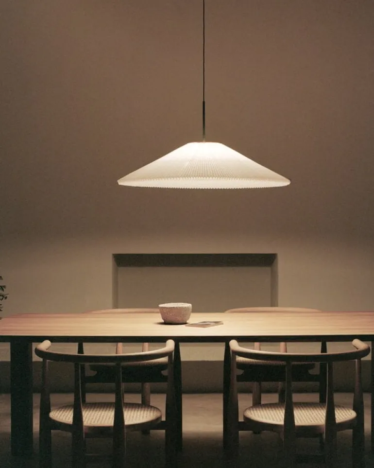 Pendellampan Nebra från New Works presenterar formgivaren Lukas Bazles moderna tolkning av de klassiska, veckade taklamporna. Den vackra ljuskällan skapades ursprungligen 2019, då under namnet Méduse. Pendellampan Nebra, som är tillverkad i ABS-plast, har en skärm med fiffiga veck som, förutom sin estetiska attraktionskraft, även tjänar ett praktiskt syfte: med deras hjälp kan storleken på skärmen justeras efter plats och humör. Diametern kan modifieras, från 50 till totalt 90 centimeter. Den mångsidiga taklampan Nebra kan med fördel användas som belysning i vardagsrum, sovrum och matsalar.