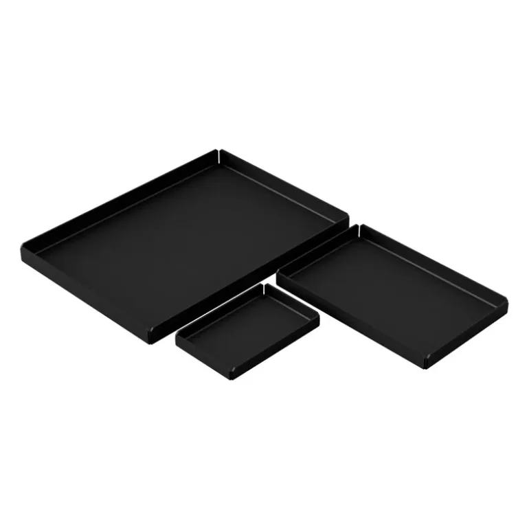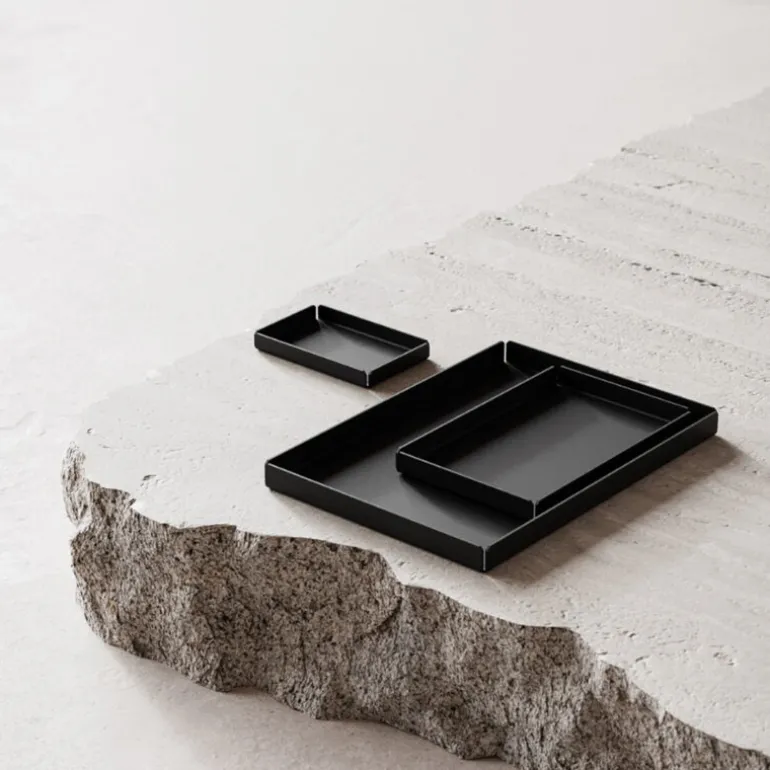 Nichbas brickset består av tre brickor i olika storlekar som skänker stil och ordning till alla hemmets rum. Dessa brickor i pulverlackerat stål med kant är designade av Pilgaard Design Studio och är perfekta för att servera små snacks, visa upp vackra föremål, organisera en arbetsstation eller förvara badrumsartiklar. Brickorna är tillverkade i Danmark och har en hållbar och minimalistisk design.