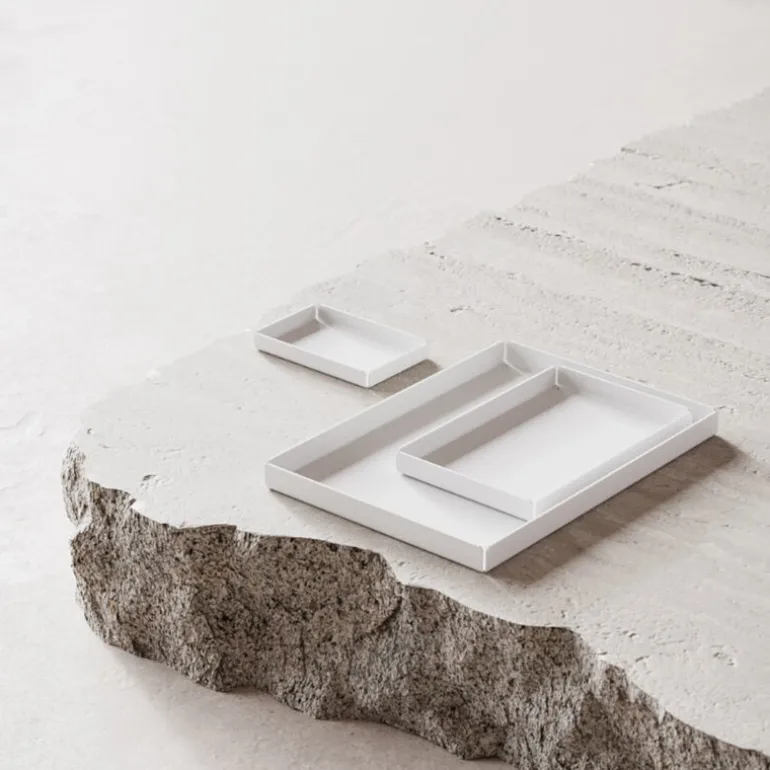Nichbas brickset består av tre brickor i olika storlekar som skänker stil och ordning till alla hemmets rum. Dessa brickor i pulverlackerat stål med kant är designade av Pilgaard Design Studio och är perfekta för att servera små snacks, visa upp vackra föremål, organisera en arbetsstation eller förvara badrumsartiklar. Brickorna är tillverkade i Danmark och har en hållbar och minimalistisk design.