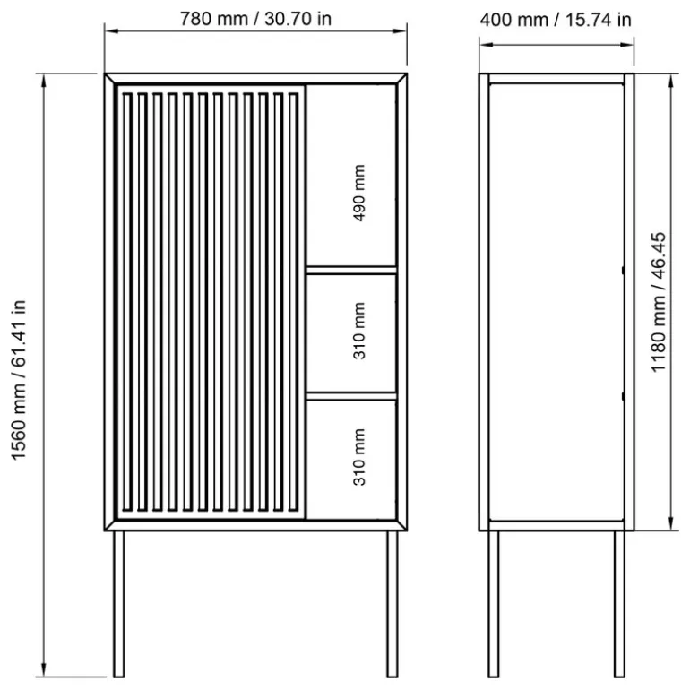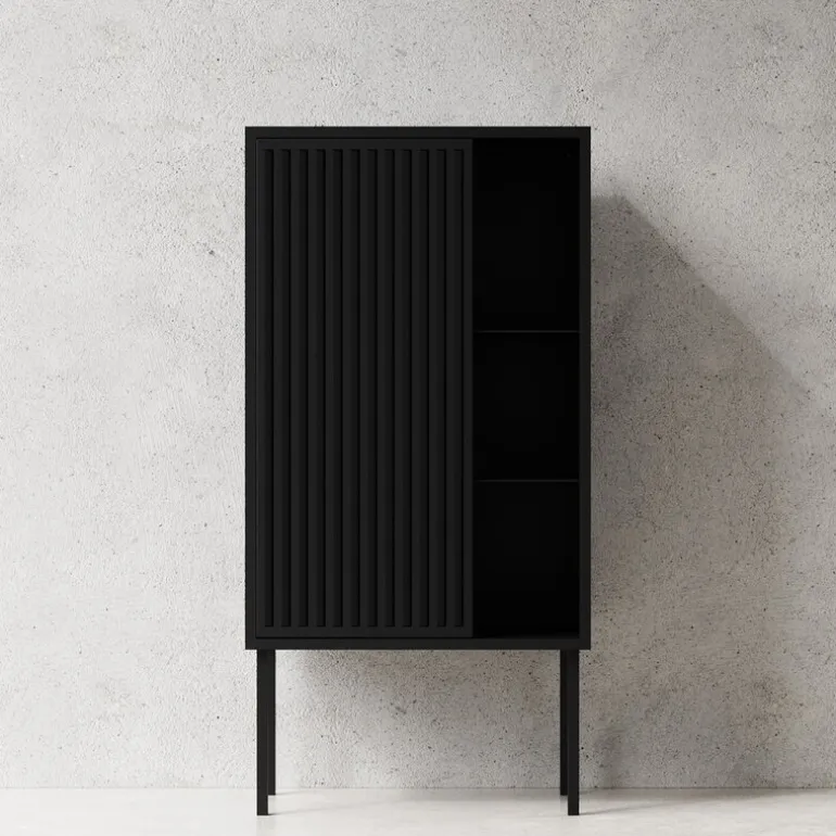 Nichbas skåp ger en känsla av nordisk minimalism och industriell känsla i alla utrymmen, både privata och allmänna. Nichbas skåp är tillverkat av pulverlackerat stål med en öppen, räfflad dörr, och ser något olika ut från alla vinklar. Den innovativa, eleganta designen gör att du kan använda skåpet för att förvara och visa upp dina böcker, prydnadssaker, porslin och annat. Skåpet designades av Nichlas B. Andersen, grundare av Nichba, och tillverkas i Danmark av duktiga hantverkare och metallarbetare.