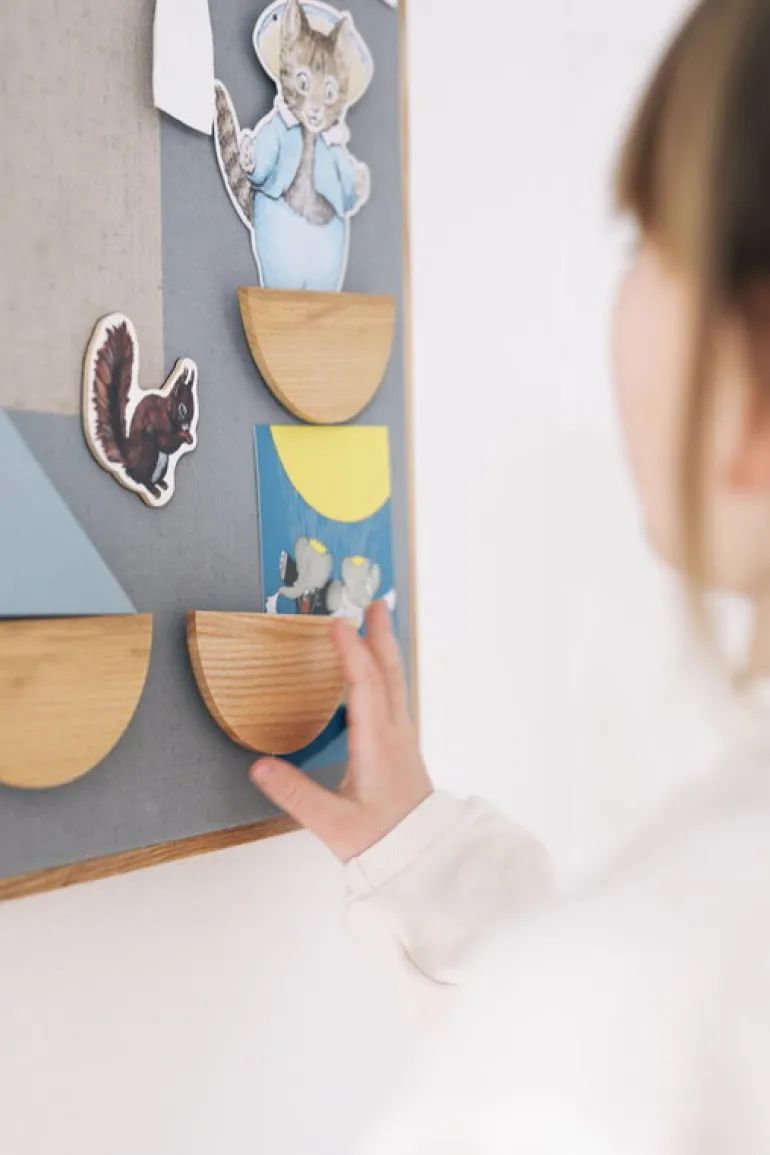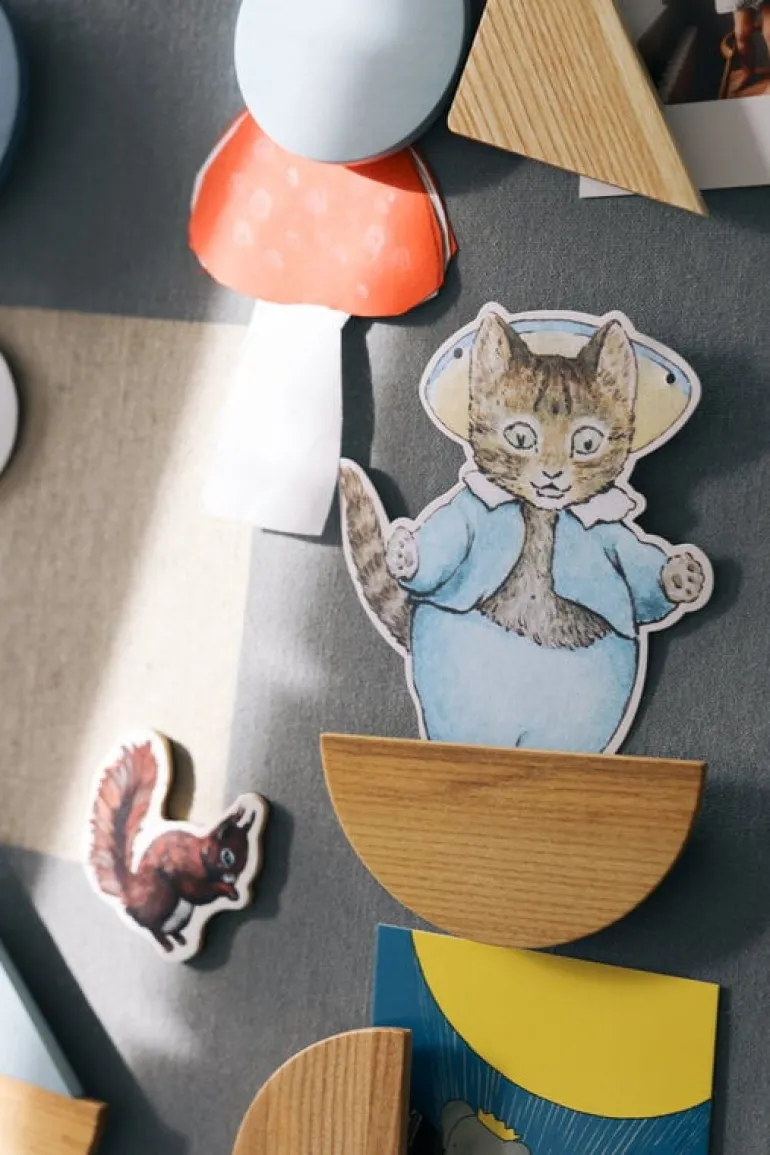 Magneterna är designade av John Astbury och tillverkade i ask och målade med säker, giftfri färg. Magnetsetet är den perfekta accessoaren till märkets minimalistiska anslagstavla, men kan även användas separat, på till exempel kylskåpsdörren. Den matchande anslagstavlan säljs separat.