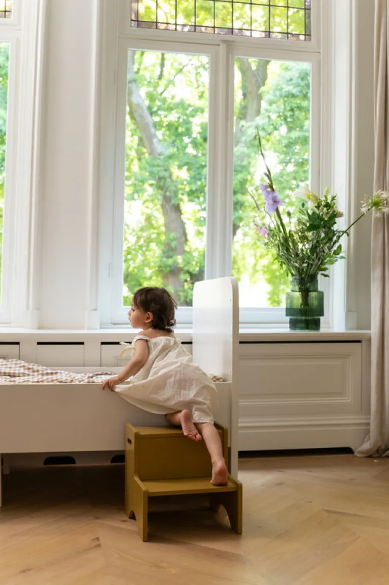Nofreds Step Up-stege är en praktisk hjälpreda för hushållets yngsta medlemmar – till lekar och andra aktiviteter och för att uppnå sina drömmar. Pallstegen i trä är en trygg och säker följeslagare som barnen kan använda till sina vardagsaktiviteter – och eftersom den är lätt kan den enkelt flyttas från rum till rum. Den tjusiga och minimalistiska stegen låter barnet komma upp lite högre i badrummet, köket eller sovrummet, och uppmuntrar barnet att delta i praktiska sammanhang.