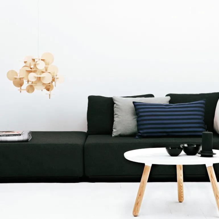 Pendellampan Bau från Normann Copenhagen är formgiven av Vibeke Fonnesberg Schmidt. Pendellampan består av tunna skivor lindträ som går in i varandra och skapar en fascinerade trästruktur. Bau är både en lampa och ett prydnadsföremål – det beror på vinkeln du betraktar den från. Den större varianten av lampan Bau har 80 delar som levereras i ett platt paket tillsammans med en bruksanvisning.