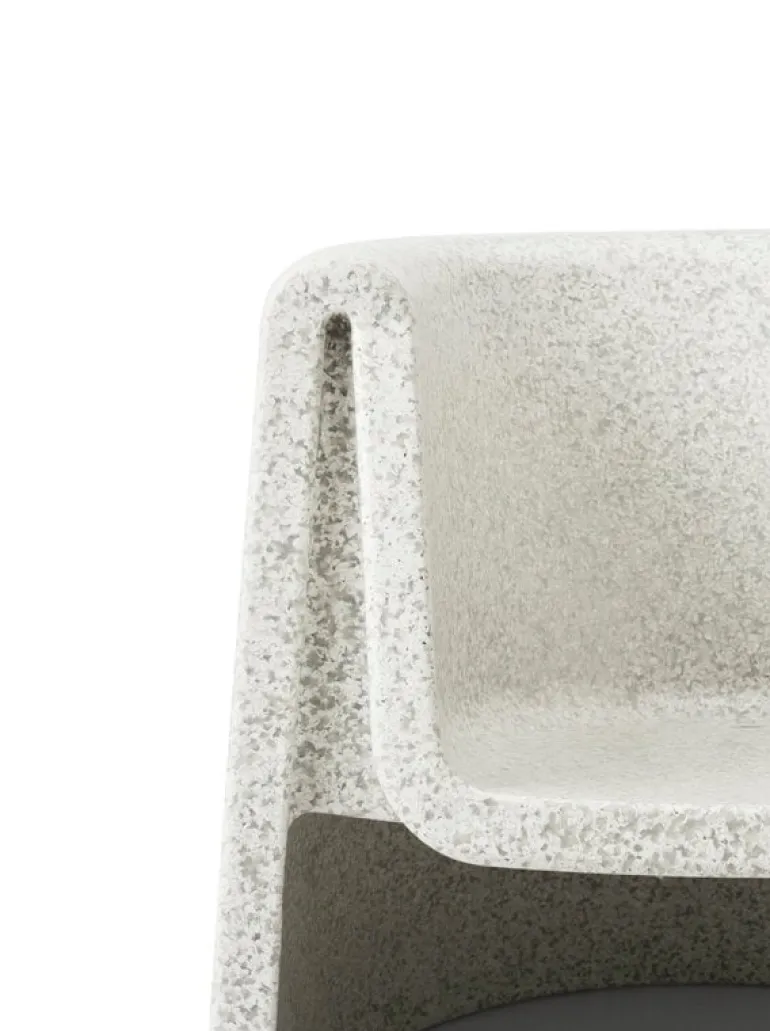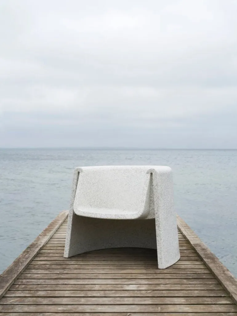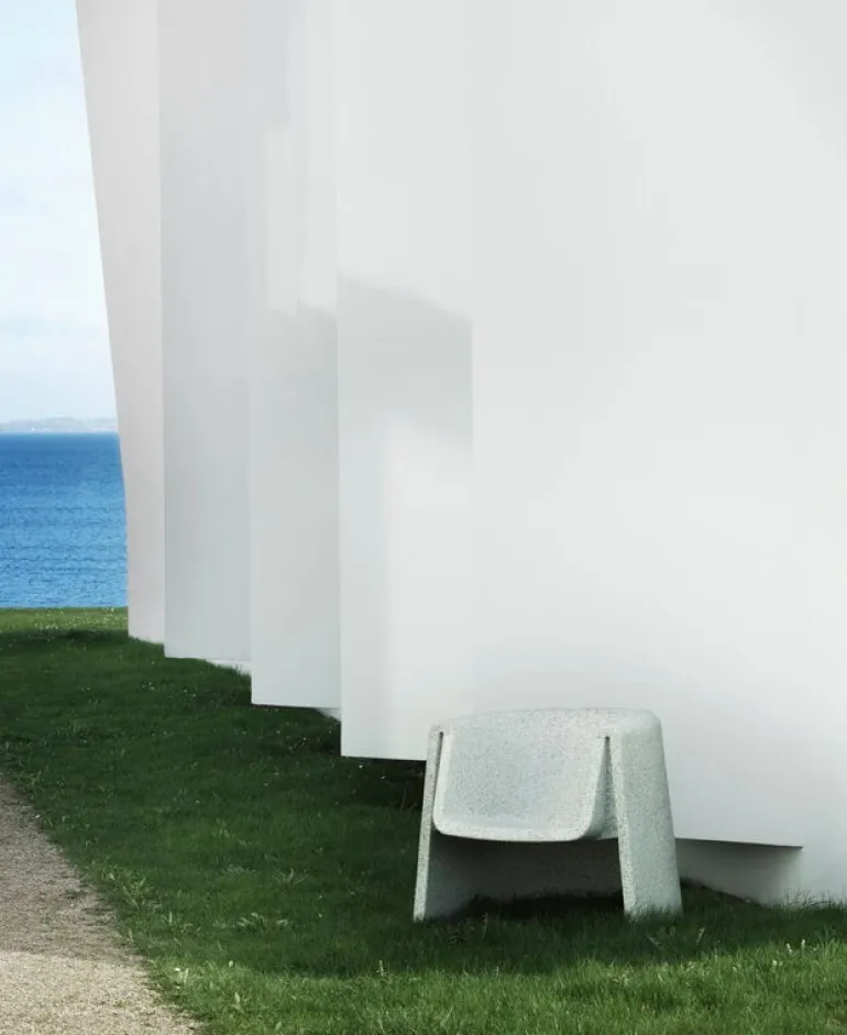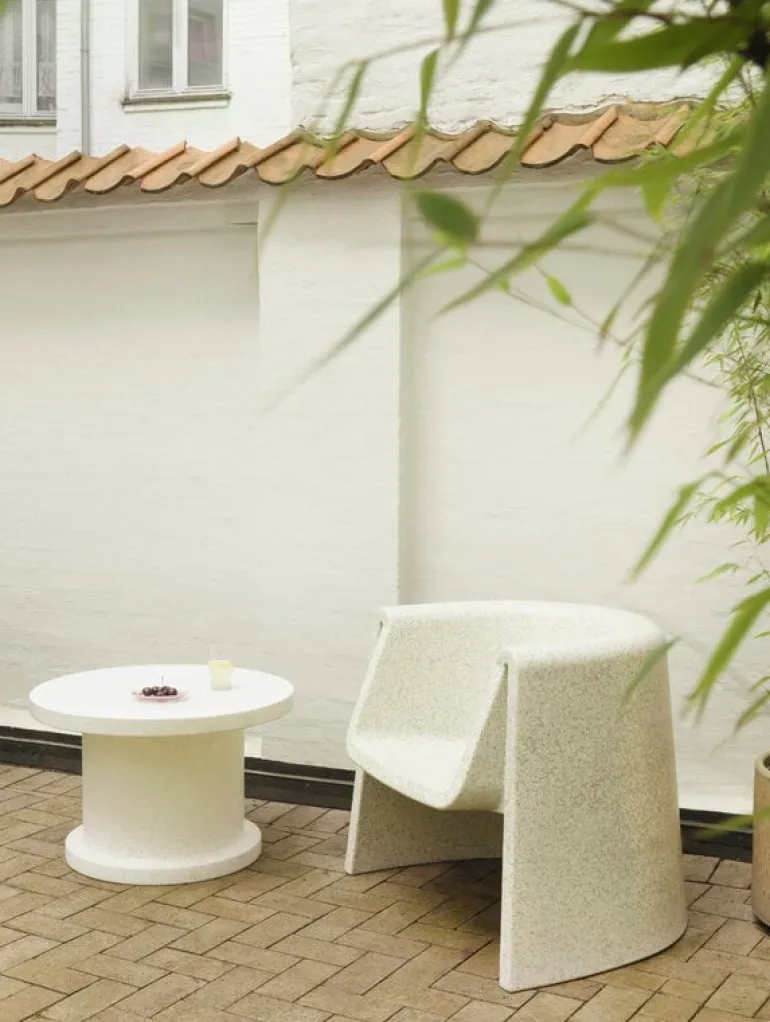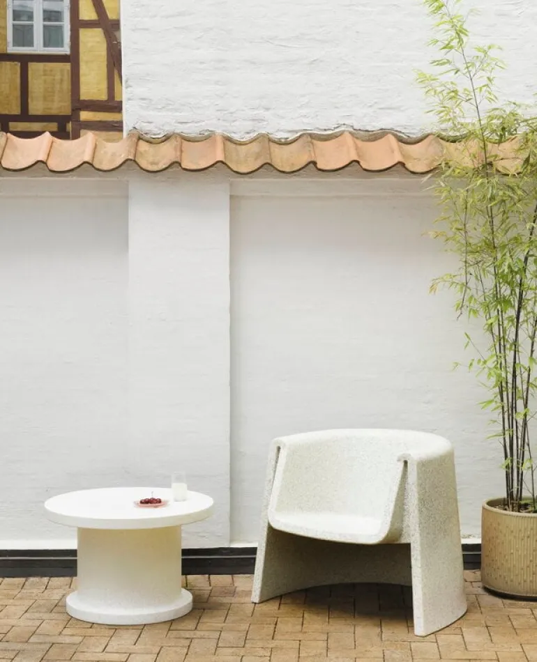 Fåtöljen Bit från Normann Copenhagen ingår i Simon Legalds omtyckta kollektion Bit, som framför allt är känd för sina ljuvliga, mångsidiga pallar. Precis som pallen är fåtöljen en distinkt möbel med flera användningsområden, som kan fungera som blickfång i vardagsrummet eller som sittplats på terrassen eller i trädgården – Bit-stolen kan användas både inomhus och utomhus, eftersom den tål temperaturer från -10 °C till +50 °C.