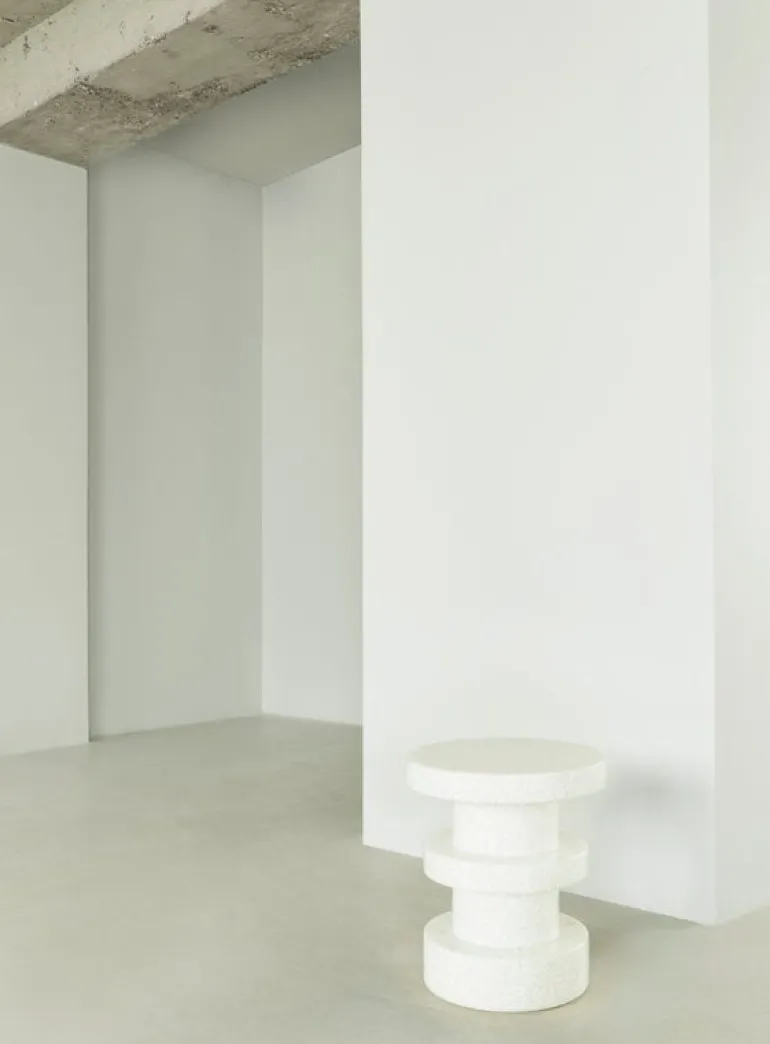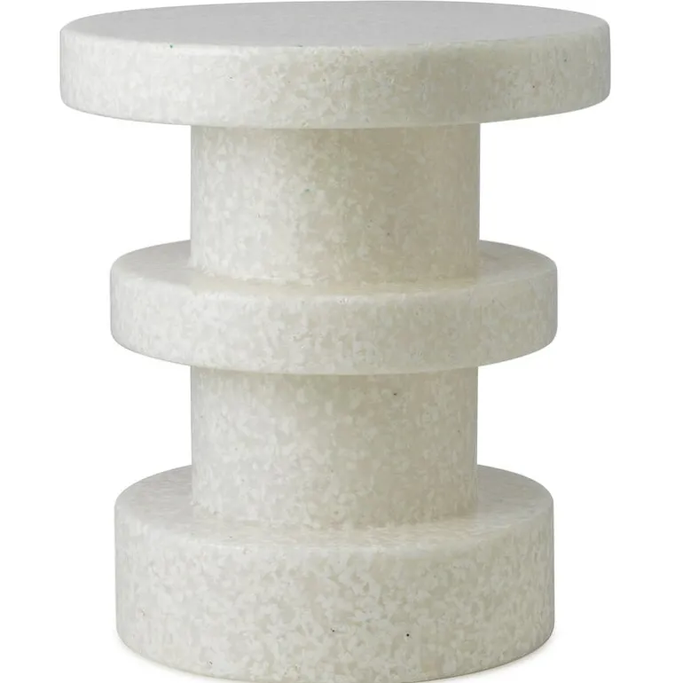 Normann Copenhagens Bit-pall är ett härligt distinkt multifunktionellt möbel som fungerar som en sittplats, sidobord och ställ för blommor och gröna växter. Designad av Simon Legald, är pallen tillverkad av återvunnen plast, med sin monolitiska form livad av en prickig yta som kommer från materialet: under pallens produktionsprocess, smälter bitar av färgglad plast ner i varje pall på ett något annorlunda sätt. Därför är varje pall också unik. Bit-pallen kan användas både inomhus och utomhus, eftersom den tål temperaturer från -10°C till +50°C.