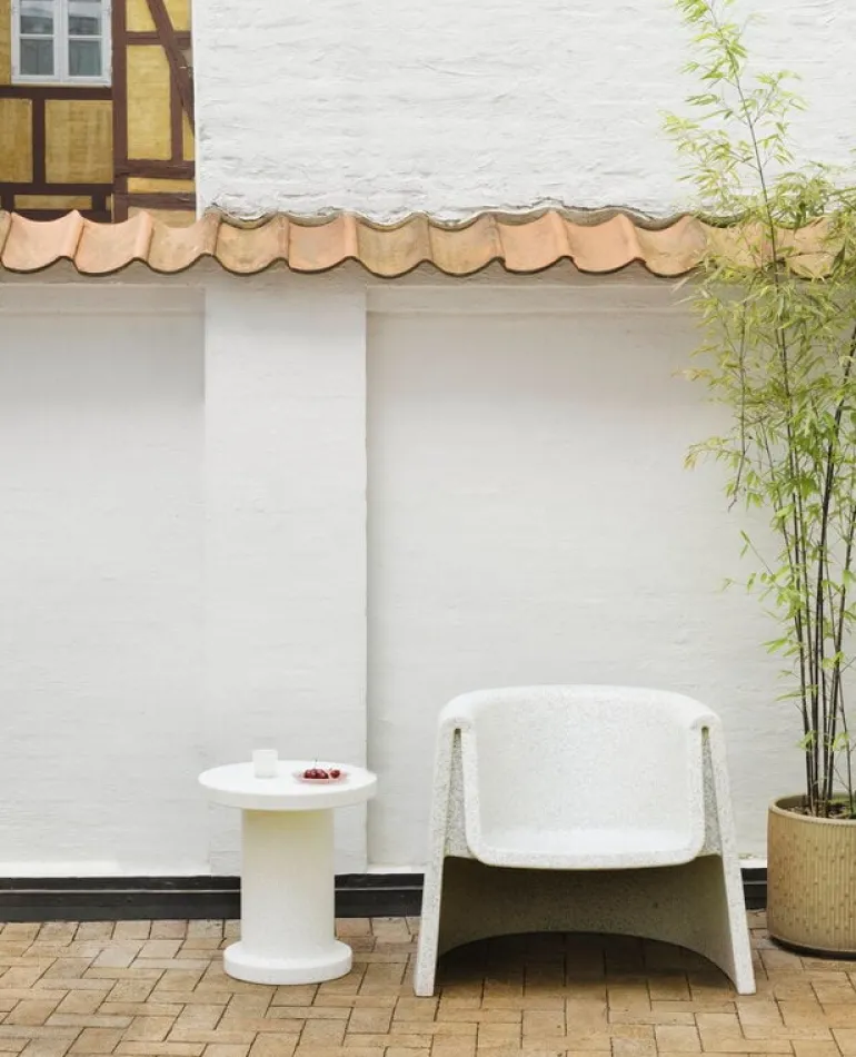 Sidobordet Bit från Normann Copenhagen ingår i Simon Legalds omtyckta kollektion Bit, som framför allt är känd för sina ljuvliga, mångsidiga pallar. Precis som pallen är bordet en distinkt möbel med flera användningsområden. Den kan användas som sidobord i vardagsrummet eller som blomsterbord. Bordet är tillverkat av återvunnen plast, och dess monolitiska form livas upp av en prickig yta som kommer från materialet: under tillverkningsprocessen smälter färgglada plastbitar samman på olika sätt i varje bord. Därför är varje bord unikt. Bit-bordet kan användas både inomhus och utomhus, eftersom det tål temperaturer från -10 °C till +50 °C.