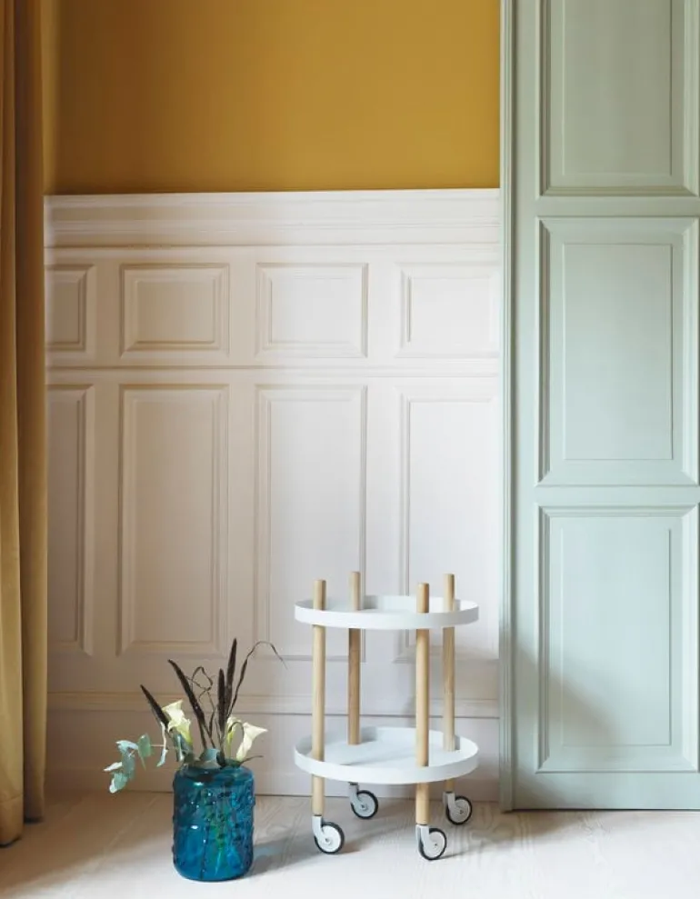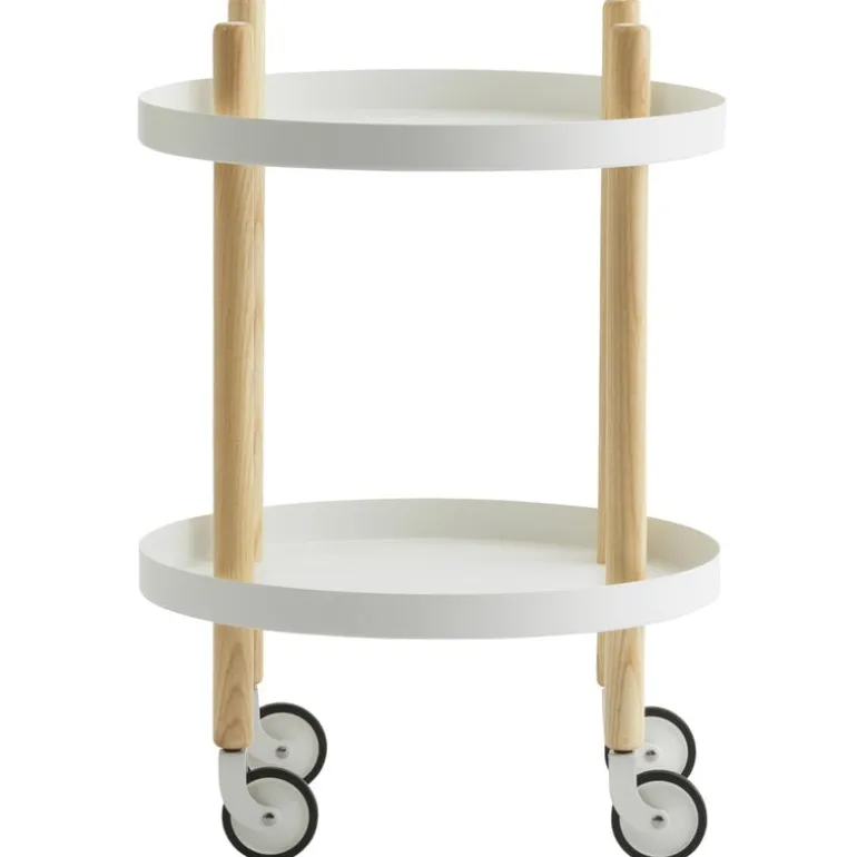 Block, designad av Simon Legald för Normann Copenhagen, är ett litet och användbart brickbord som kan användas som serveringsvagn i matsalen, som soffbord i vardagsrummet eller som nattduksbord i sovrummet. Eftersom Block levereras med hjul är den lätt att flytta från en plats till en annan. Ramen i askträ ger en lätt och naturlig känsla till det industriella uttrycket i hjulen och bordskivorna, som är av stål. Block är enkel att sätta ihop och inga verktyg behövs.